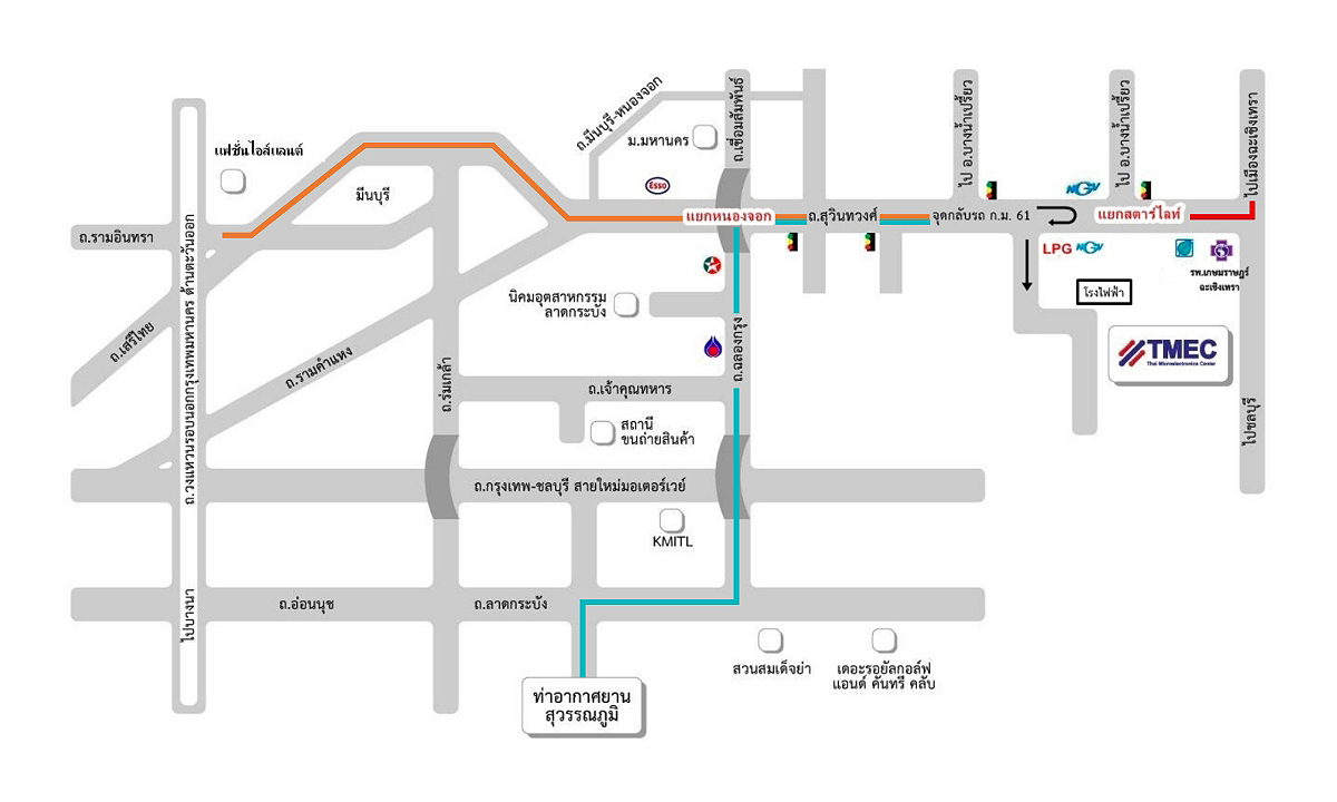 - Turn left onto the road where TMEC sign is located, go straight for 900 m., then turn left and follow the road for about 500 m., crossing the Wang Takhian Canal.